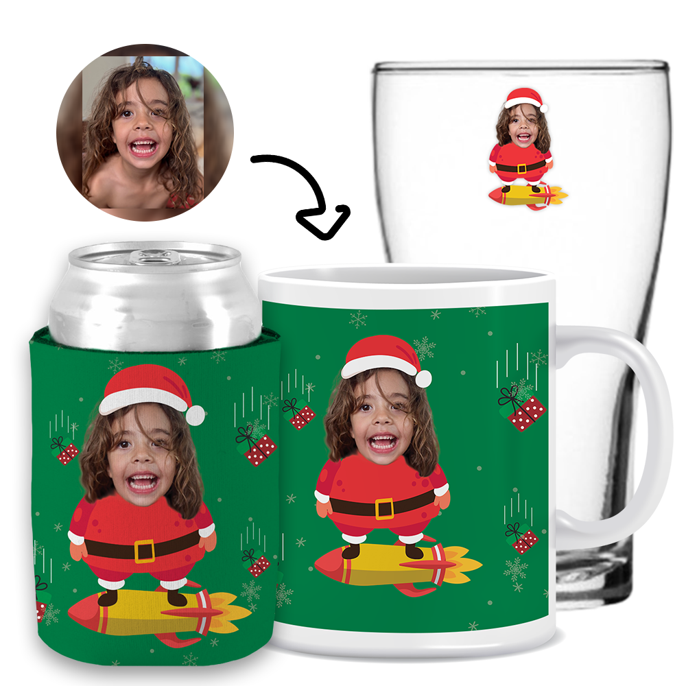 Santa Claus - Kit 3 (Stubby Holder, Ceramic Mug & Schooner Glass)