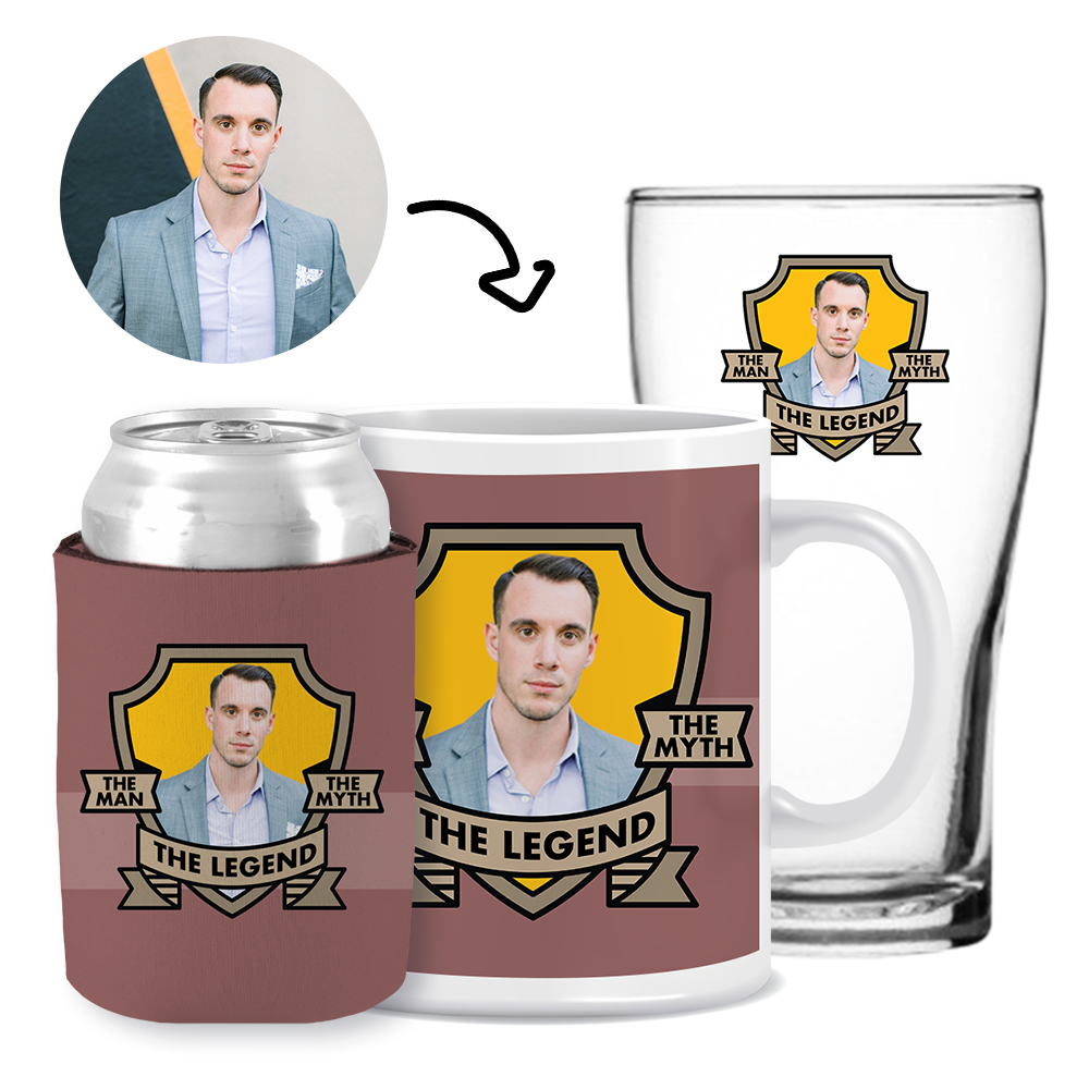 The Man, The Myth, The Legend Red - Kit 3 (Stubby Holder, Ceramic Mug & Schooner Glass)